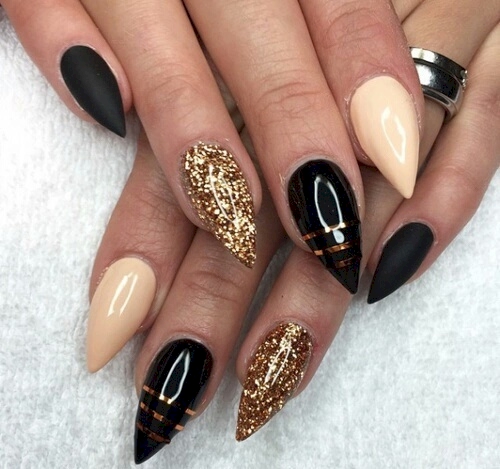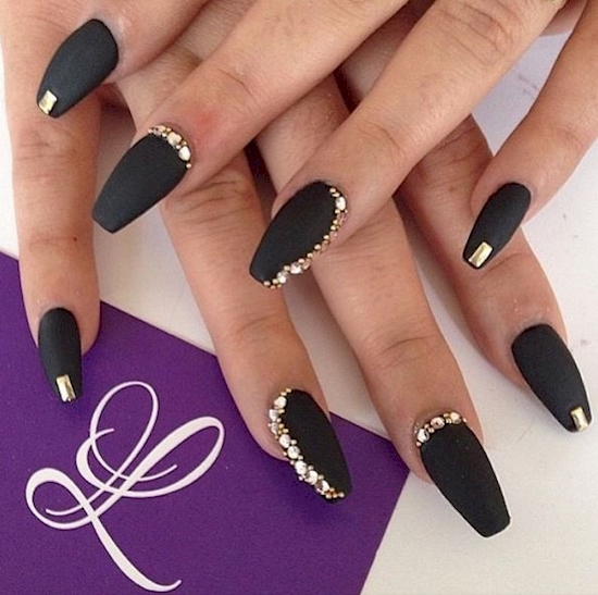 Προσωπικά, μου αρέσει να ταιριάζω ένα μαύρο ματ με χρυσό.Είναι μια εκπληκτική εμφάνιση! Τα μαύρα νύχια μπορεί να είναι διακοσμημένα ή απλά – οι δυνατότητες είναι ατελείωτες.