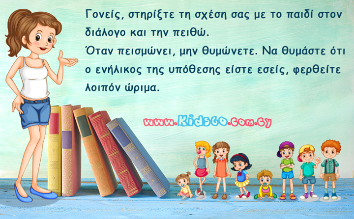 12. Στηρίξτε τη σχέση σας με το παιδί στο διάλογο και την πειθώ. Όταν πεισμώνει, μην θυμώνετε. Να θυμάστε ότι ο ενήλικος της υπόθεσης είστε εσείς, φερθείτε λοιπόν ώριμα.