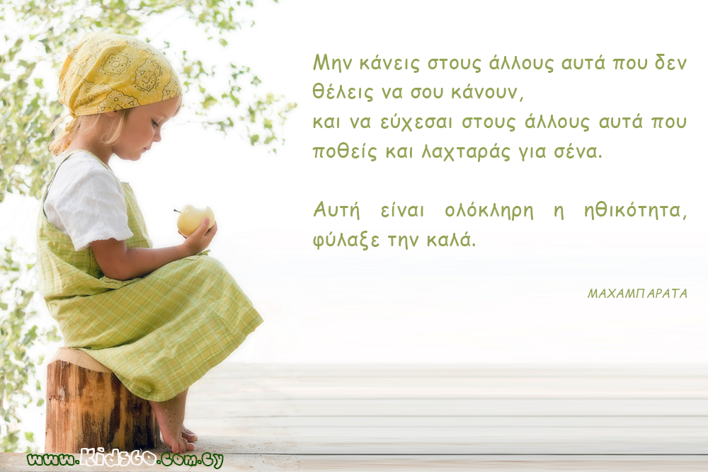 5. Μην κάνεις στους άλλους αυτά που δεν θέλεις να σου κάνουν, και να εύχεσαι στους άλλους αυτά που ποθείς και λαχταράς για σένα. Αυτή είναι ολόκληρη η ηθικότητα, φύλαξε την καλά. (ΜΑΧΑΜΠΑΡΑΤΑ)
