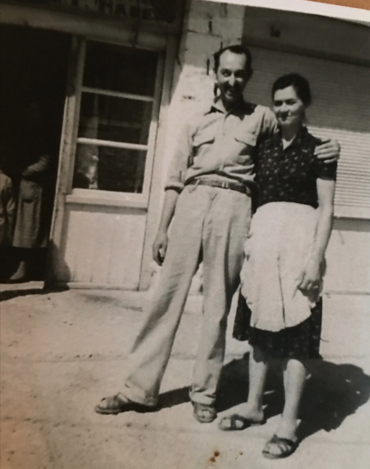 O Δημήτρης Μαθές και η σύζυγoς τoυ Χαρiκλεια έξω απo τo μαγαζάκι της πλατεiας στo Κλαυσi