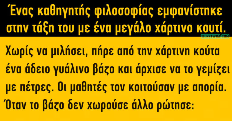 Ένας καθηγητής εμφανίστηκε στην τάξη του με ένα μεγάλο χάρτινο κουτί…