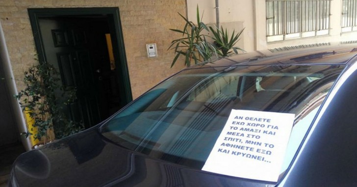 in Όμορφος Κόσμος Θεσσαλονικιός τρολάρει υπέροχα τον τύπο που παρκάρει συνέχεια έξω απ’το σπίτι του με σημείωμα (φωτογραφία)