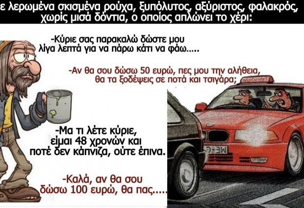 in Όμορφος Κόσμος Aνέκδοτο: Στο φανάρι σταματά μια BMW 750, και την πλησιάζει κουτσαίνοντας ένας ζητιάνος