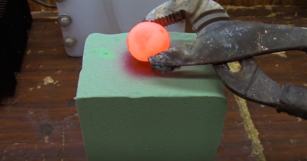 in Βίντεο Τοποθετεί μια κόκκινη καυτή μπάλα νικελίου πάνω σε ένα τετράγωνο κομμάτι αφρολέξ. Αυτό που γίνεται στη συνέχεια είναι τρελό!