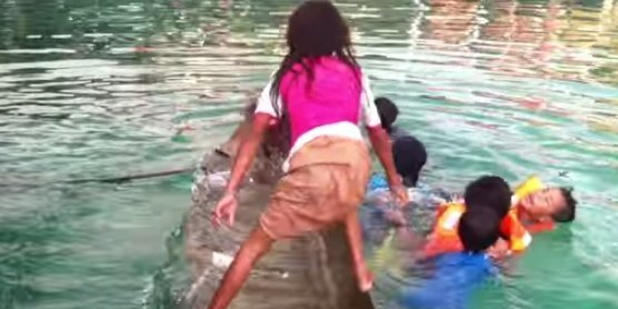 in Βίντεο Δείτε αυτό το μικρό κορίτσι πως σώζει το βουλιαγμένο κανό της χρησιμοποιώντας μόνο τα πόδια της!