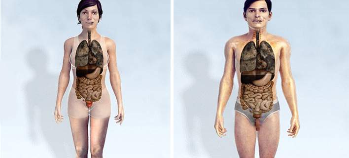 in Υγεία Οι τρομακτικές επιδράσεις του τσιγάρου στο σώμα σε ένα γράφημα – Τα όργανα ενός καπνιστή και ενός μη καπνιστή [εικόνες]