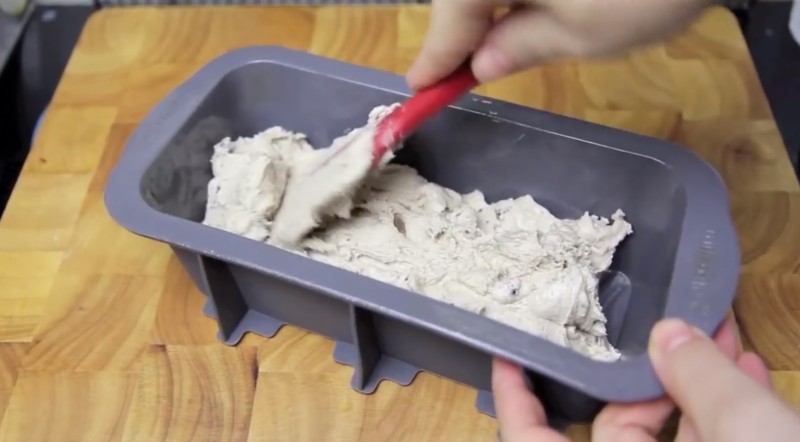 Βάλτε τη ζύμη σε μια φόρμα και σιγουρευτείτε ότι δεν υπάρχουν φυσαλίδες αέρα. Τοποθετήστε στο φούρνο στους 175o και ψήστε για 45 λεπτά.