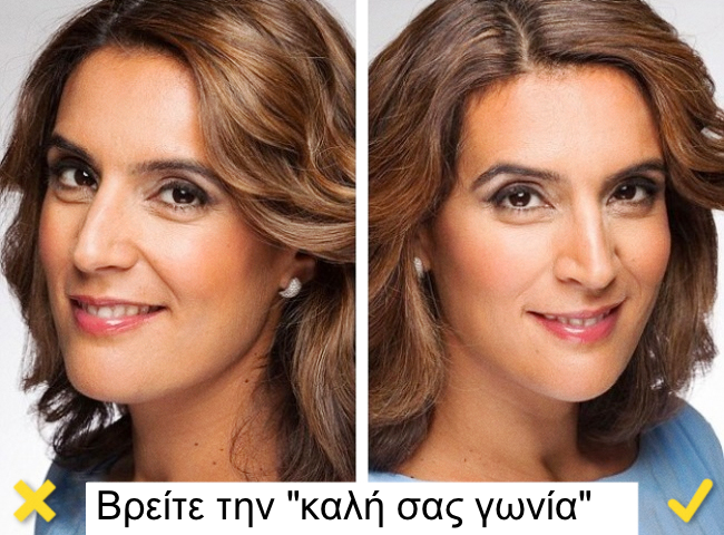 «Σχεδόν όλοι οι άνθρωποι έχουν ασσύμετρο πρόσωπο γι΄αυτό καλό είναι να εντοπίσετε το λεγόμενο ευνοϊκό φως» συμβουλέυει ο διάσημος φωτογράφος John Godwin. «Βρείτε ποιά πλευρά σας, σας αρέσει περισσότερο και κοιτάζετε την κάμερα από αυτή την πλευρά»