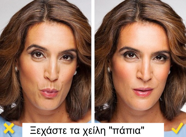 Τα χείλη “πάπια” όχι μόνο δεν δείχνουν ωραία, αλλά πολύ συχνά σας κάνουν να φαίνεστε σαν να φάγατε μόλις κάτι με κακή γεύση. Αν θέλετε να παίξετε με τα χείλη σας κανετε σαν να θέλετε να φιλήσετε κάποιον χωρίς όμως να τα τεντώσετε. Επίσης διάσημα μοντέλα προτείνουν την έκφραση που έχουμε όταν φυσάμε απαλά ένα κερί.