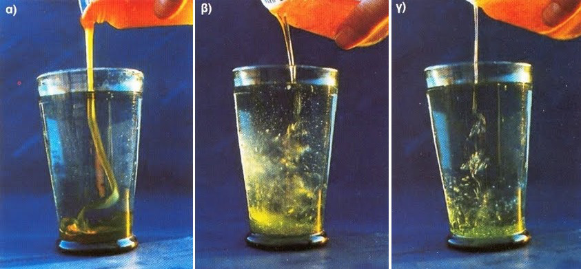 α) το καθαρό μέλι χύνεται στον πυθμένα χωρίς να διαλύεται εύκολα.