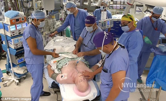 Η… μαραθώνια επέμβαση κράτησε 26 ώρες και χρειάστηκαν 100 χειρούργοι για να αντικαταστήσουν τα αυτιά, το πηγούνι, τα μάγουλα, τη μύτη και τα βλέφαρα του με αυτά του δότη