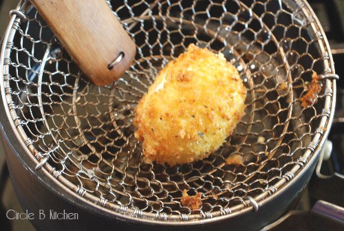 - Βάζουμε προσεκτικά το αυγό στο καυτό λάδι όχι περισσότερο από 30 δευτερόλεπτα. Θα μας βοηθήσει κουτάλα ή σύρμα για φριτέζα, για να το ακουμπάμε προσεκτικά στο λάδι.
