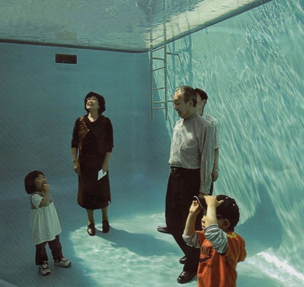Δεν βλέπεις συχνά πισίνα σε μουσείο, αλλά στην αυλή του 21st Century Museum of Contemporary Art στο Kanazawa της Ιαπωνίας υπάρχει μία. Όταν πλησιάζουν στην άκρη, οι επισκέπτες βλέπουν μια συνηθισμένη πισίνα, με καθαρό, μπλε νερό, σκάλα, και – για μισό λεπτό… Περπατάνε οι άνθρωποι εκεί;