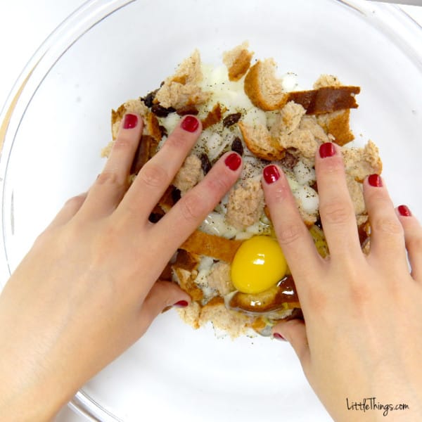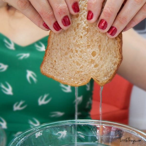 Μουλιάστε 4 φέτες ψωμί σε νερό και βάλτε και αυτές στο μπολ.