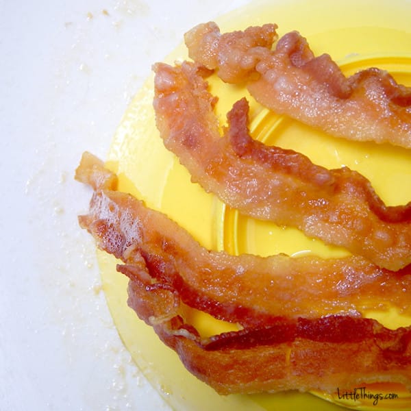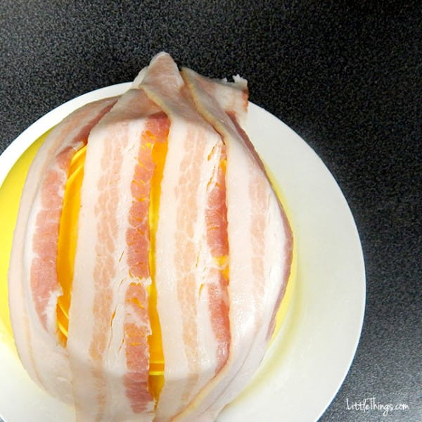 Μπορεί να σας φανεί «ανορθόδοξος» ο τρόπος που θα ετοιμάσουμε το μπέικον, αλλά υπάρχει λογική πίσω από την τρέλα μας! Γυρίστε ένα μπολ ανάποδα πάνω σε ένα πιάτο, τοποθετήστε πάνω τις λωρίδες μπέικον και βάλτε το στο φούρνο μικροκυμάτων μέχρι να βγει κρατσανιστό.