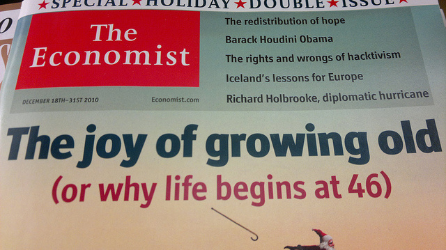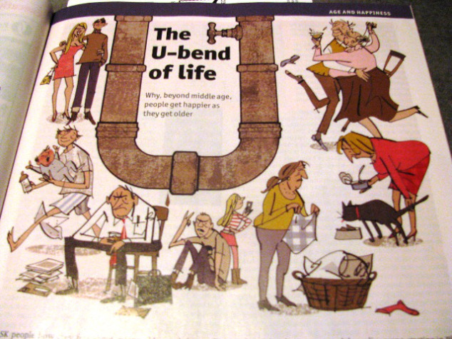 Ο «Economist» επικαλείται µεταξύ άλλων τη µελέτη του αµερικανού καθηγητή Οικονοµικών Ντέιβιντ Μπλέιντσφλαουερ, ο οποίος εξέτασε τα δεδοµένα από 72 χώρες, οι κάτοικοι των οποίων κλήθηκαν να απαντήσουν στην ερώτηση πόσο ικανοποιηµένοι είναι από τη ζωή τους. Ενα από τα συµπεράσµατα είναι ότι ο µέσος όρος ηλικίας αλλάζει από χώρα σε χώρα.