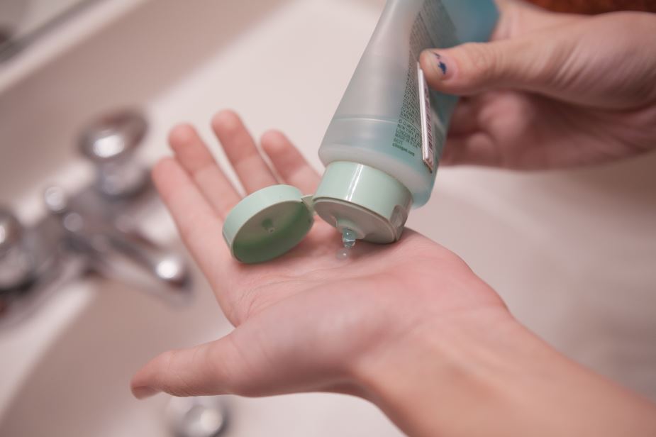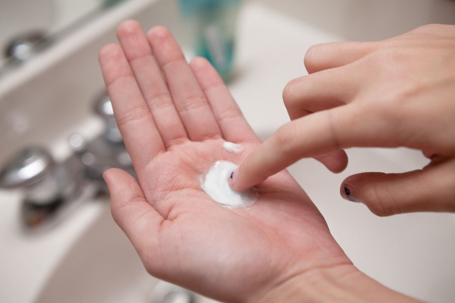 Βρέξτε το πρόσωπό σας με χλιαρό νερό. Βάλτε λίγο από το αγαπημένο σας ενυδατικό καθαριστικό προσώπου στο χέρι σας. Μπορείτε να χρησιμοποιήσετε και κάποια ενυδατική κρέμα βέβαια.