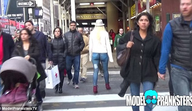 Η ξανθιά κοπέλα, που προβάλλεται στο βίντεο, είναι γυμνή από τη μέση και κάτω, αλλά μια ειδική make up artist έχει ζωγραφίσει ένα τζιν παντελόνι πάνω της. Η δουλειά της ήταν τόσο καλή, που κανείς από τους περαστικούς δεν κατάλαβε πως το παντελόνι που έβλεπαν ήταν μια ζωγραφιά.