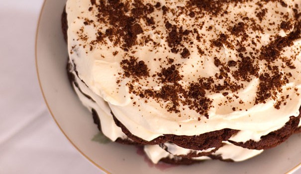 Συνεχίζετε άλλες 2 φορές με στρώσεις κούκις σαντιγί, τελειώνοντας τη τελευταία στρώση με σαντιγί με την οποία θα καλύψετε την οροφή και αν επιθυμείτε και τα πλάγια του γλυκού.