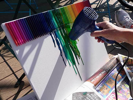 Η ιδέα είναι από το blog Homesthetics και το μόνο που χρειάζεστε είναι ένας καμβάς, πιστολάκι μαλλιών και… κηρομπογιές!