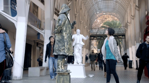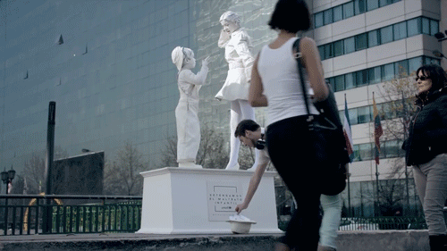 Αρχικά, ο θεατής νόμιζε πως ήταν μια ακόμη κοινότυπη παράσταση των ζωντανών αγαλμάτων που συναντάμε σε πολυσύχναστους δρόμους.Όμως έκανε λάθος.