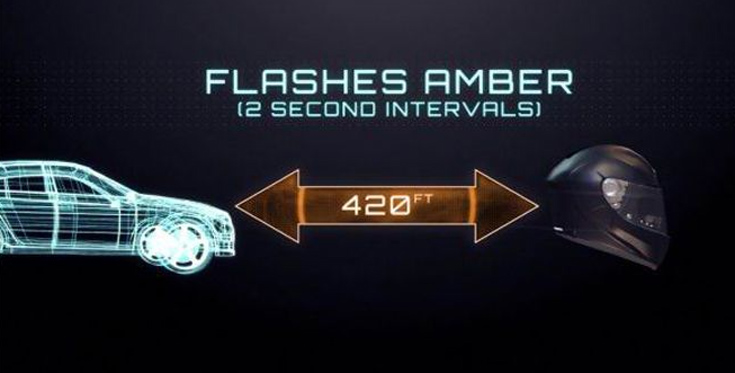 Στην περίπτωση αυτή μια σειρά από LED λυχνίες στο σαγόνι του κράνους ειδοποιούν τον αναβάτη για τον επερχόμενο κίνδυνο ώστε να μην τον βρει απροετοίμαστο.